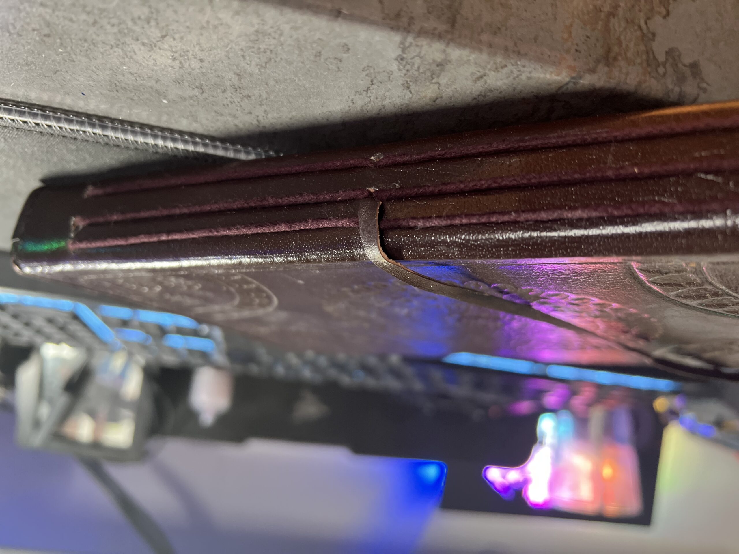 - Du cuir, ou simili cuir (Skai) pour couvrir la couverture