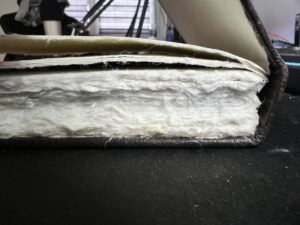 Il n’est pas indispensable, mais si vous n’en utilisez pas, c’est donc le cuir qui jouera ce rôle. Et avec le temps, le cuir risque de se fendre, voir de casser aux pliures. Vous n’aurez alors pas d’autres choix que de refaire votre couverture…