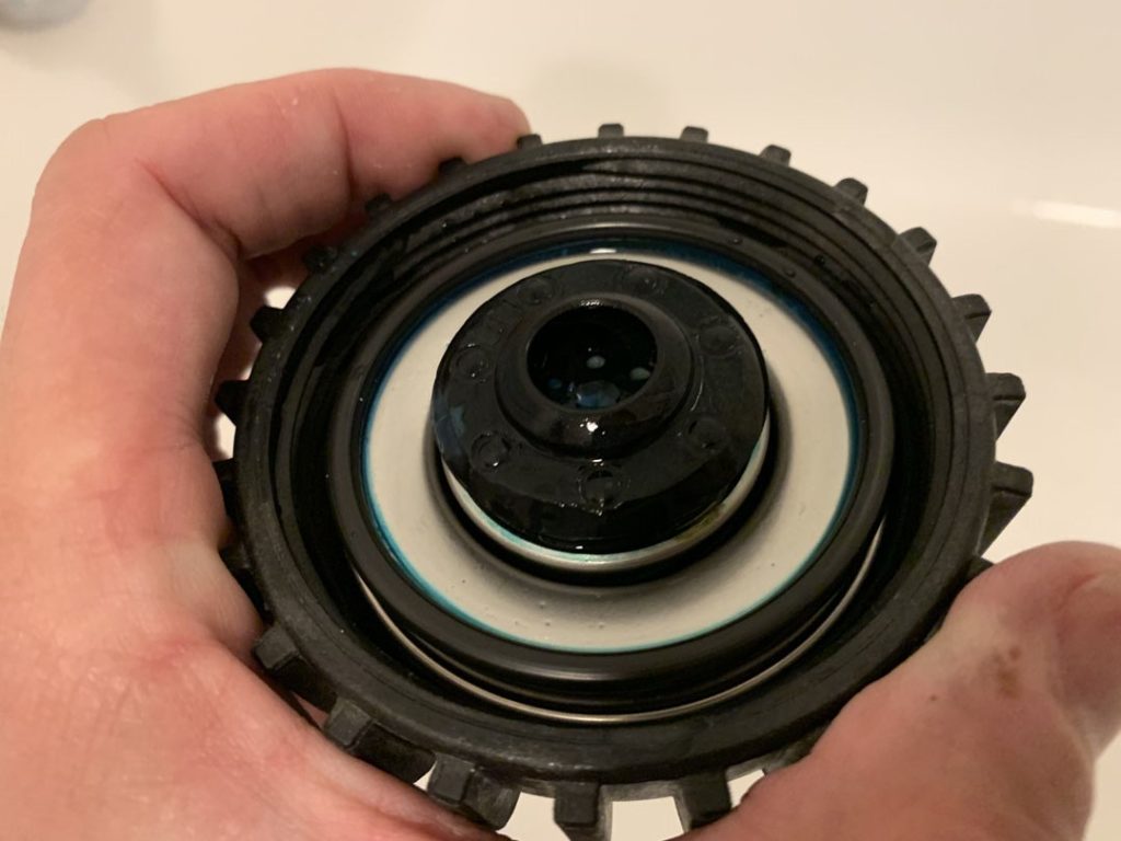Mais le pire a probablement été au niveau de la pompe. Le colorant bleu avait totalement recouvert le réservoir, et s’était fixé dans la pompe.