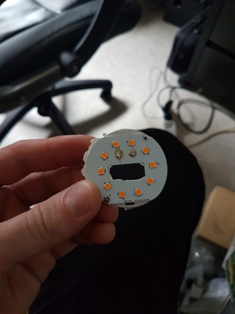 - Il faut à présent placer une plaque de plastique à l’arrière de la carte électronique, afin d’assurer qu’il n’y aura pas de défaut de conductivité électrique avec la lanterne (qui est en métal)